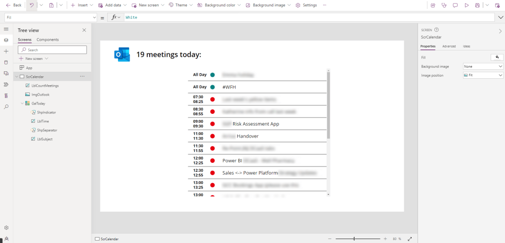 With Microsoft expanding their suite of apps every month, it can be difficult to create the right view of data for you to personally consume without context switching. Recently I have been exploring the Office365Outlook Connector in Canvas Apps to bring a day view of my calendar into a Power App alongside information from other meeting & task related content that I consume on a regular basis, and here are a few tips on how I created the solution.